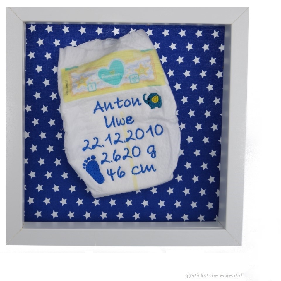 Baby Windel Im Rahmen Mit Wunschdaten Besticken Lassen